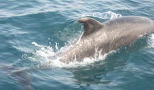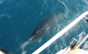 A notre grand étonnement, un couple de dauphins (Tursiops truncatus) est dans le port et nous accompagne pendant une heure.