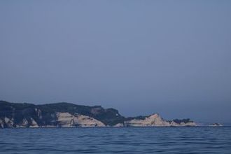 Arrivée en vue de l'île de Corfou , la pointe de Drastis, puis, avant de changer de cap, la pointe verdoyante de